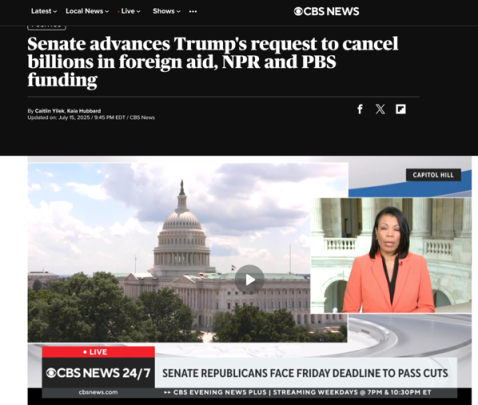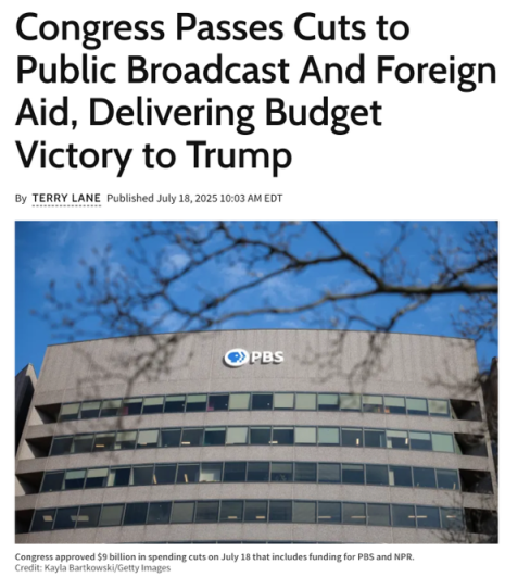 正因如此,削减支出法案所涉及的NPR与PBS等公共媒体,已经多次呼吁保留拨款,强调地方电台与教育内容可能因此面临关停。