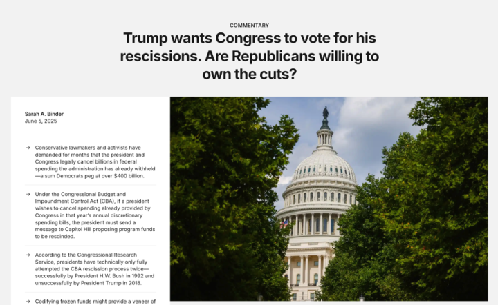 总之,削减支出法案不是孤立动作,而是特朗普政府2025预算谈判链条中的第二阶段。第一阶段是“大而美”法案的跨党派妥协,第二阶段则是共和党内部重构优先级的过程。